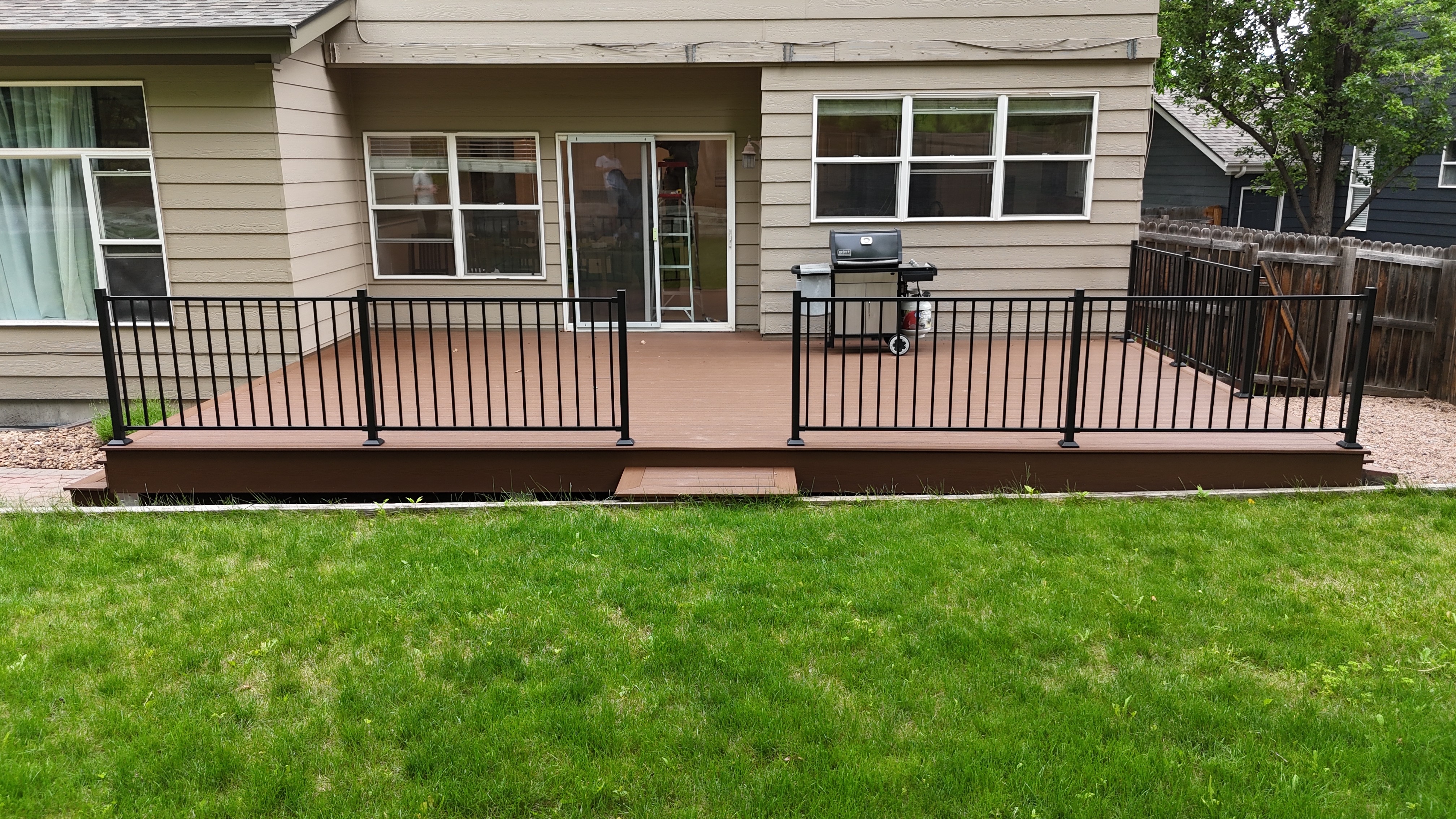 This clean and functional deck build in Littleton, Colorado, replaced an older structure with a fresh, low-maintenance solution. Built using durable composite decking in a warm brown tone, the new space offers a clean look that complements the home’s exterior while standing up to Colorado’s unpredictable weather.
